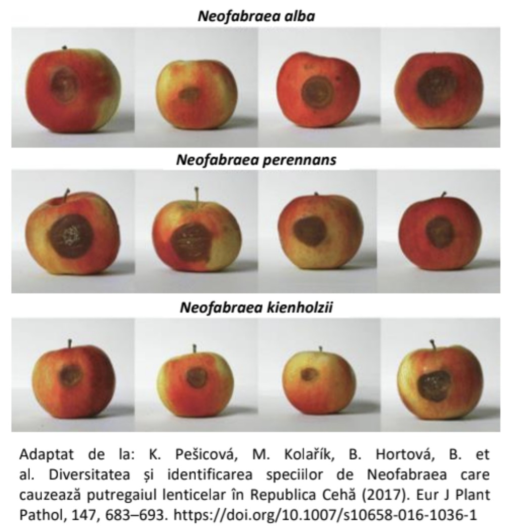 Este foarte dificil să se facă diferența între infecțiile de putregaiul lenticelar cauzate de diferitele specii de Neofabraea pe fructe.