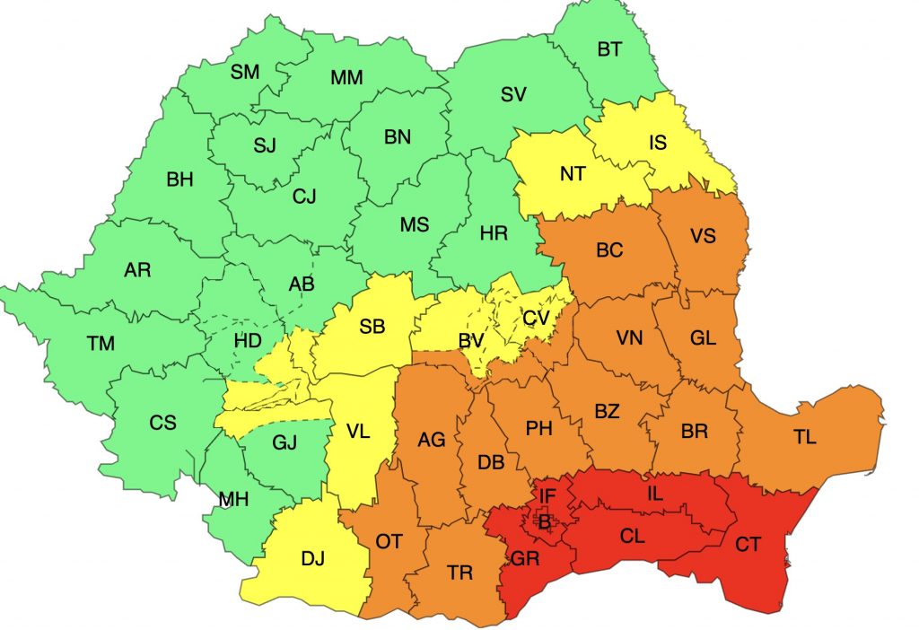 De marți, ora 21.00, până miercuri, ora 15.00, Bucureștiul și județele Ilfov, Călărași, Ialomița, Giurgiu și Constanța se află sub avertizare meteorologică cod roșu de ploi torențiale și abundente.