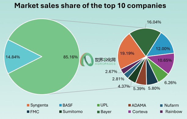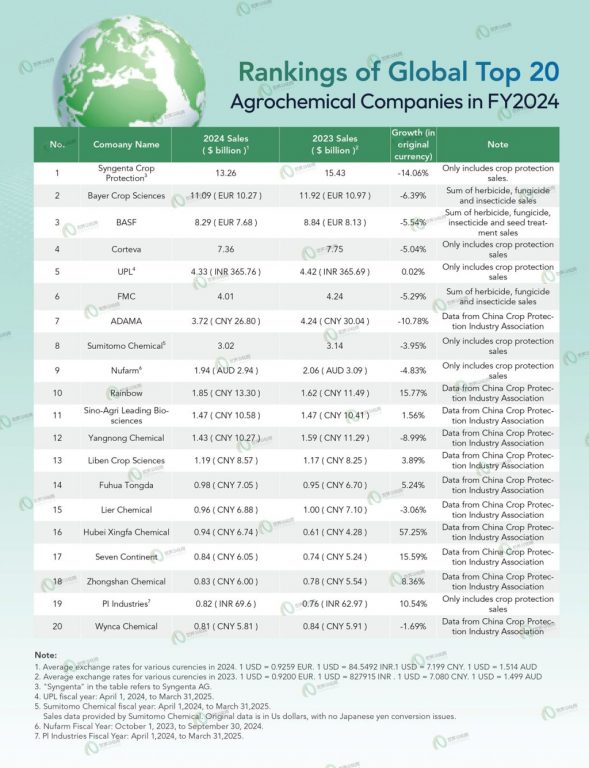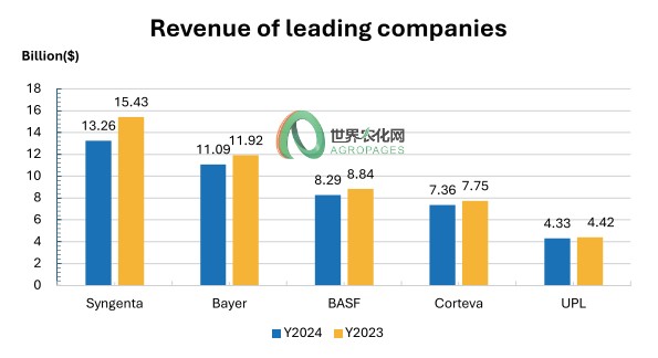 În total, vânzările cumulate de pesticide ale acestor lideri globali au atins 69,1 miliarde USD, în scădere cu 6,02% față de anul precedent.