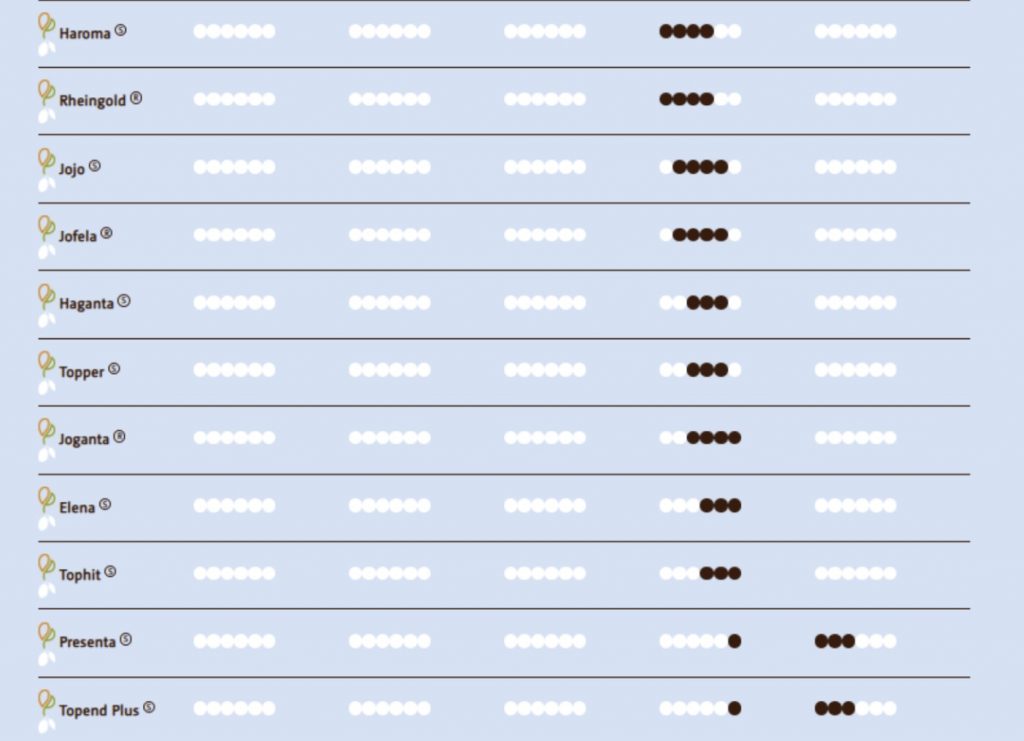 Top, clasificat ca soi de mijloc de sezon, oferă recolte mari, însă în anii cu temperaturi ridicate poate fi susceptibil la brunificarea și scăderea fermității pulpei, precum și infecții cu Pseudomonas.