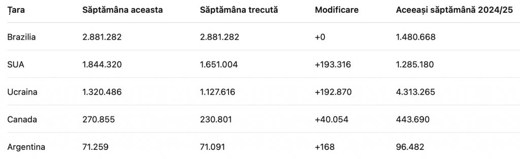 Recuperarea unei părți din datele franceze a redus decalajul exporturilor raportate ale UE pentru 2025/26 față de sezonul precedent, astfel că totalul a ajuns să se apropie de nivelul din anul trecut în raportul anterior.