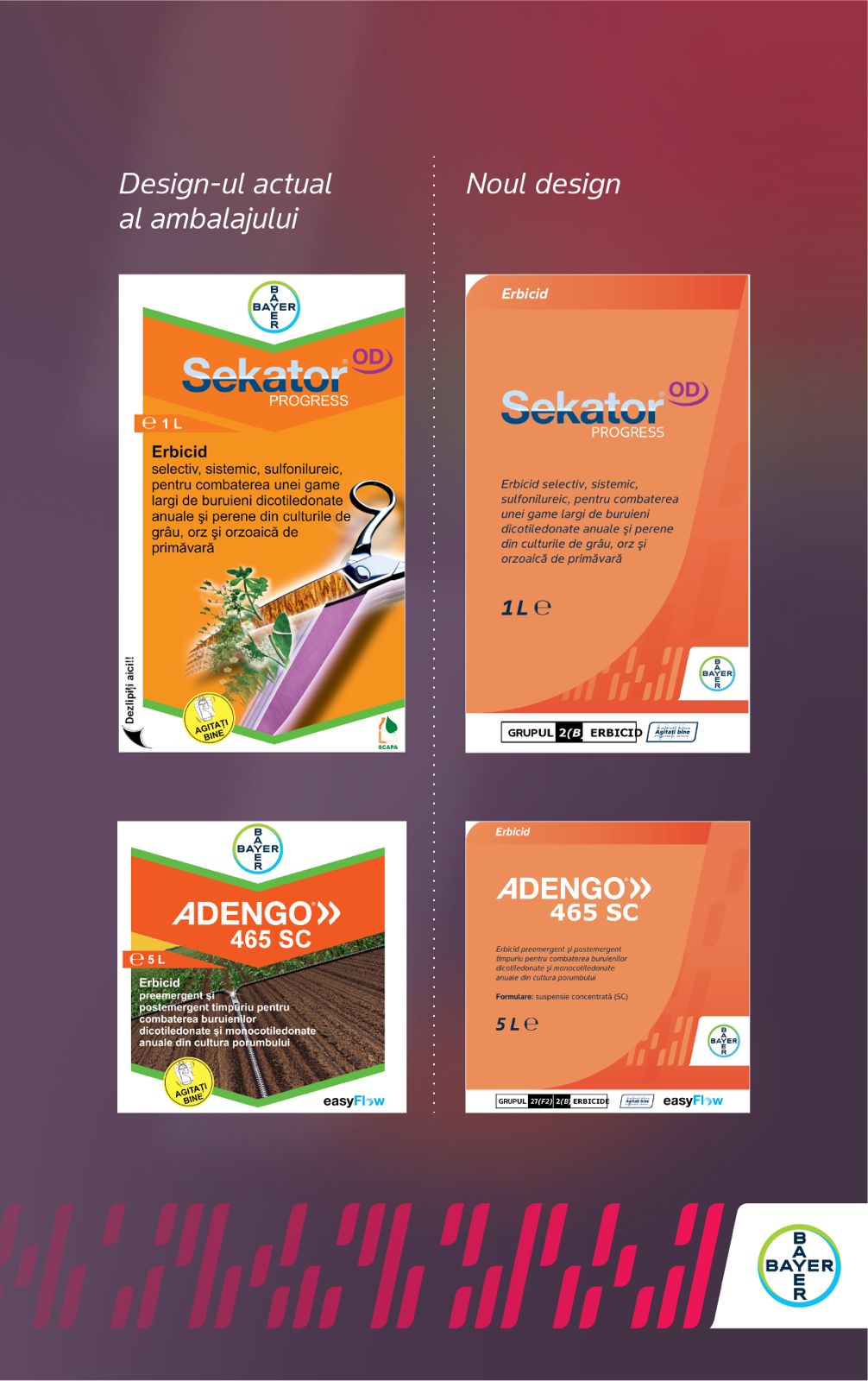 Recunoașterea sporită a brandului este asigurată prin vizibilitatea crescută a binecunoscutului logo Bayer pe toate liniile de produse, împreună cu un sistem vizual unificat pentru întregul portofoliu.