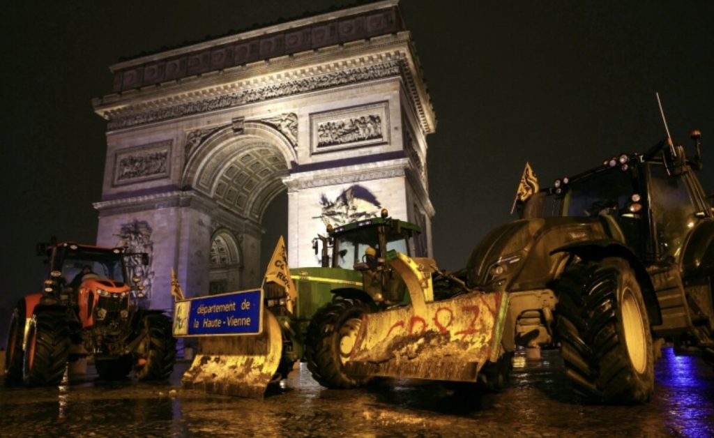 În Franța, fermierii au intrat joi dimineață cu tractoarele în centrul Parisului, ajungând până în apropierea Turnului Eiffel.