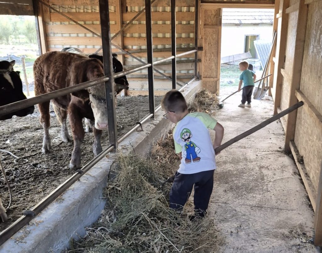 Pentru familia Hrimiuc, ferma este și un loc de formare pentru cei mici.