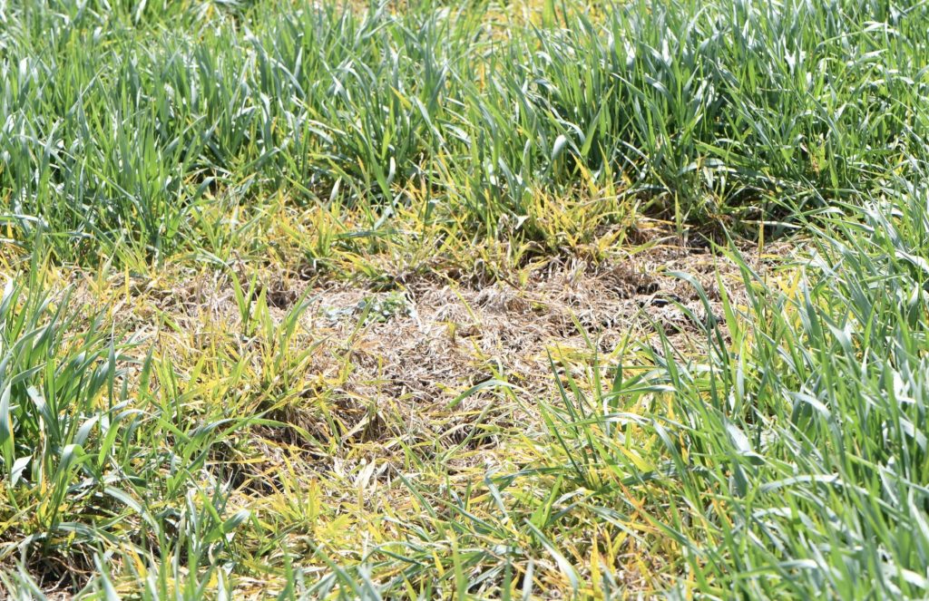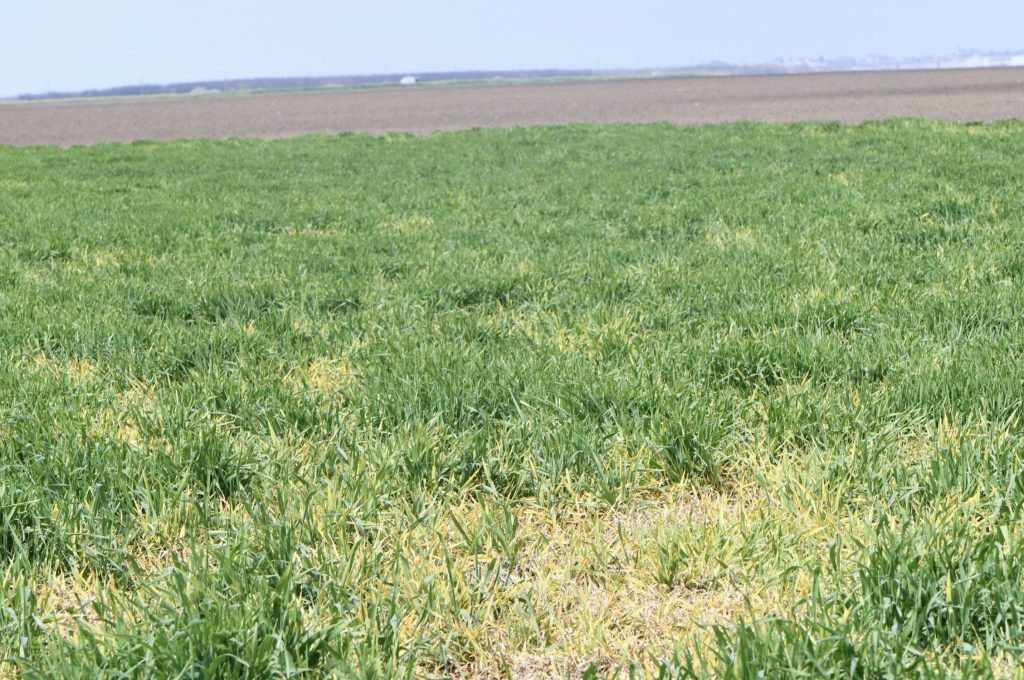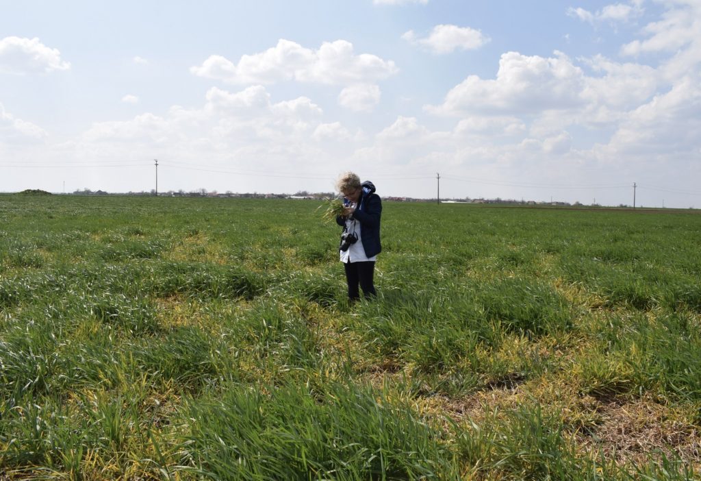 Foto: martie 2023, atac virulent de Microdochium nivale la orz, Timiș.