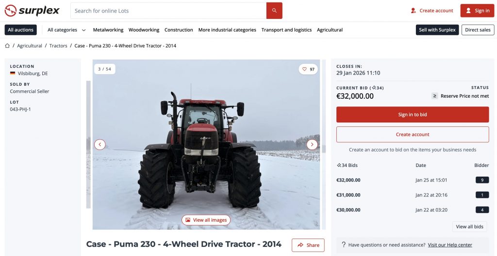 Selecția de mai jos reunește 10 utilaje agricole cu valoare ridicată, din branduri recunoscute, listate pe Surplex.com – potrivite pentru cei care vor să prindă o fereastră scurtă de lucru sau să-și consolideze flota în această perioadă.
